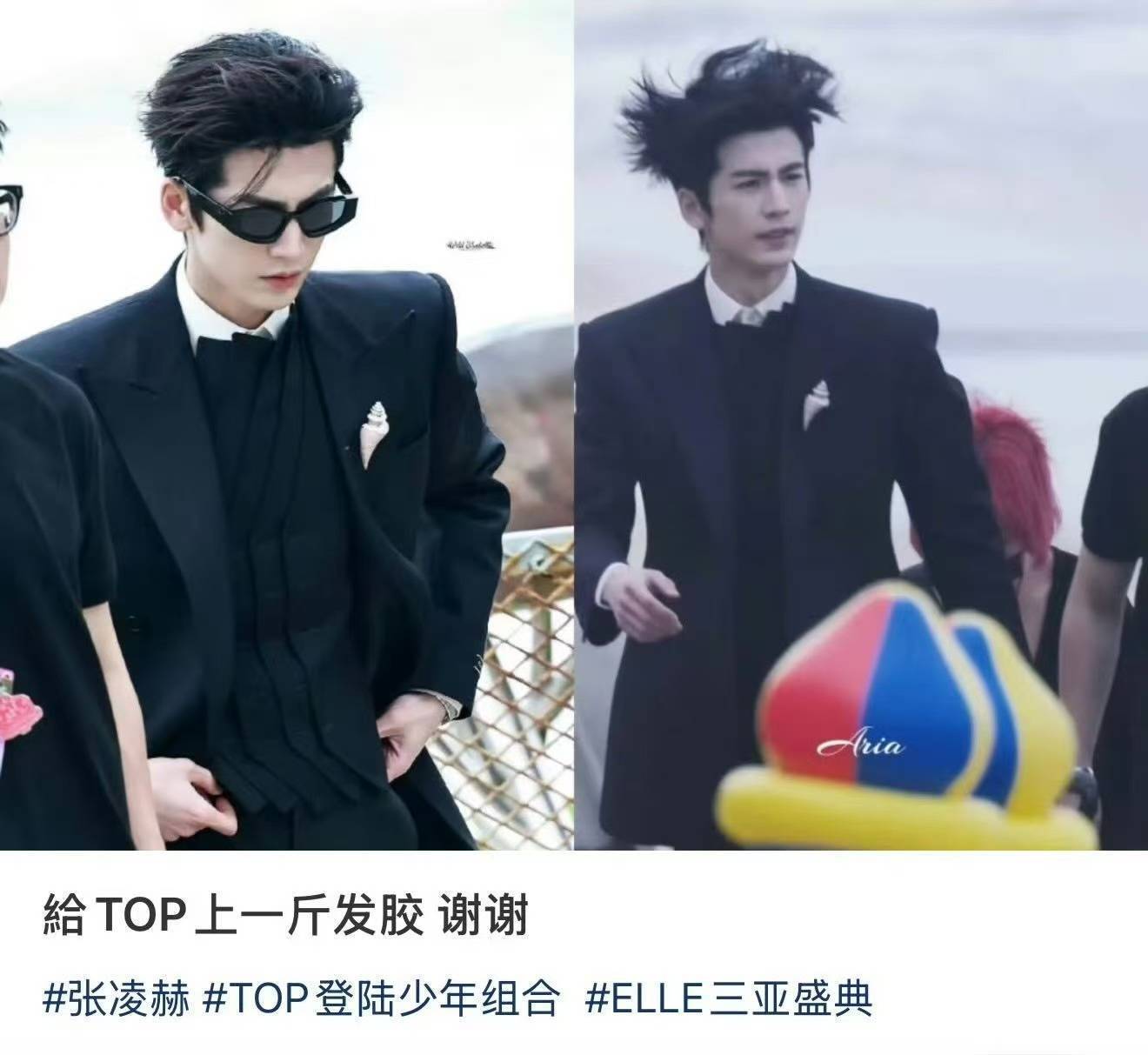 男明星们的发际线也没能逃过海风的「魔爪」。张凌赫出场前还是墨镜配大背头的精英总裁,一踏上沙滩就被吹成了「金毛狮王」——发蜡定型的头发根根炸毛,黑西装被吹得贴在身上,深一脚浅一脚走在软沙上的样子,活像刚从台风眼里逃出来。网友截的生图里,他试图用手按头发却越按越乱,最后只能顶着鸡窝头硬着头皮摆pose,表情包素材库当场更新。